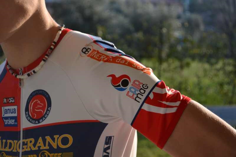 Il "ragazzo immagine" della Polisportiva persenta la nuova maglia in dotazione al Team di Ciclismo per la Stagione 2013.