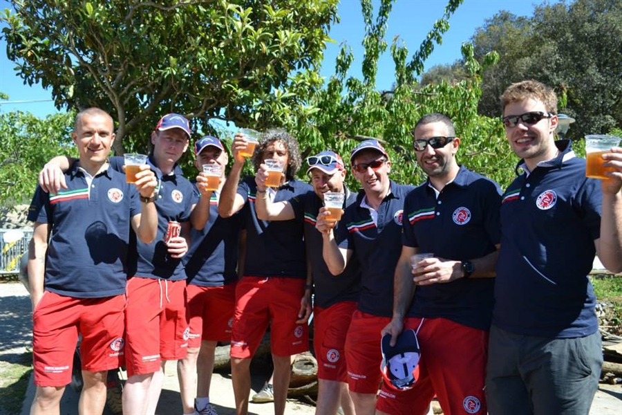Brindisi di birra, intoppo del nostro capitano in uno scontro con una sasso, e tappa in spiaggia con la nuova divisa di rappresentanza rosso-blu prima del rientro in terra Bresciana.
