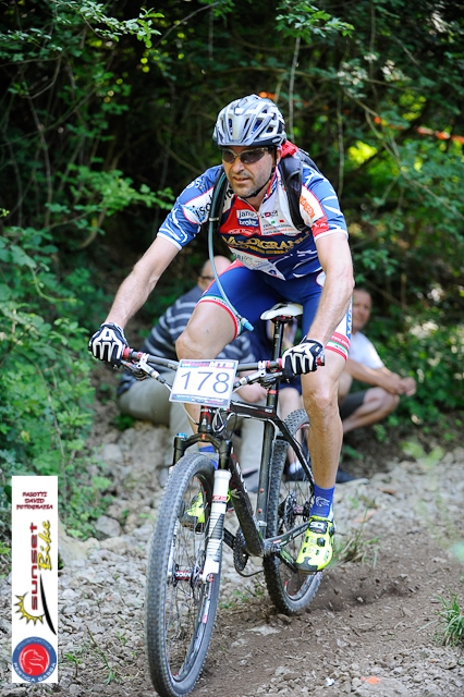 Nessun ingorgo questa volta mi dava possibilita' di rifiatare e stranamente non riuscivo a recuperare sugli atleti davanti a me; eppure la maglia di Cadenelli era solo poche decine di metri avanti a me: forza Claudio non mollare! Arrivato ad Ono Degno un piccolo ristoro ottimamente gestito dai molti volontari prestatisi per l'occasione mi attendeva prima degli ultimi 5 impegnativi minuti di salita. Da qui nuovamente la picchiata verso il paese con le scalinate , questa volta affrontate in maniera un po' più decisa, e poi la discesa verso Forno d'ono. Ho appena iniziato la mulattiera verso la frazione di Forno d'Ono quando anche la prima donna mi chiede strada, si tratta della vincitrice della corsa rosa Angela Perboni, leader del circuito master mtb per la categoria master woman 2. Credevo di non andare più tanto piano, i freni non erano tirati, la ruota non era buca: ma allora perche' perdo metri su metri! Arrivo al cartello che segnala l'ultimo km del percorso quando comincio ad udire in lontanza il rumore della moto che fa da scopa al vincitore. Un motto d'orgoglio mi prende e nonostante un altro paio di allievi mi avessero appena passato nel tratto tecnico della discesa faccio uno scatto (o comunque un'accelerazione che vagamente gli somigliasse!) per riuscire a passare sotto il gonfiabile che decreta la mia ‘salvezza' e che smaschera il mio masochismo! Ora ti tocca l'agonia del terzo giro, penso, ed essendo rimasti sul percorso solo 146 atleti, dei quali io sono l'ultimo, non ti resta che vedere di raggiungere almeno gli ultimi ritardatari come te!