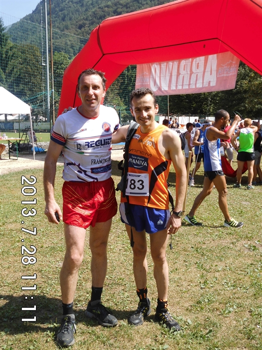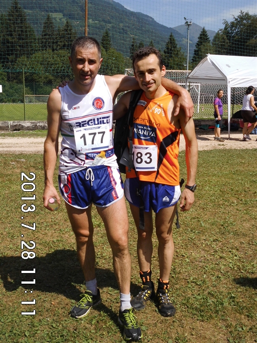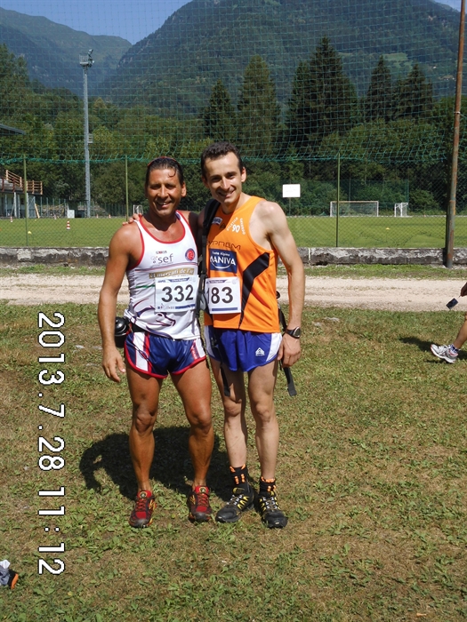 Dopo il violento acquazzone caduto un paio d'ore prima del via, i runners temevano un percorso insidioso e scivoloso, ma fortunatamente il caldo sole sorto gia' dalle 8 del mattino ha sufficientemente asciugato il percorso così da non rovinare la festa a nessuno e permettere comunque ai vincitori delle categorie maschile e femminile di frantumare i record della corsa. Alle ore 9 circa la corsa ha preso il via e, tra gli uomini, i succitati hanno preso subito la testa del gruppo fino al ragggiungimento della prima salita posta al km 2 dove il solo Zanoni Marco del team Legnami Pellegrinelli tentava di tenere il passo del fortissimo Rambaldini (lo ricordiamo dominatore di tutte le prove di corsa in montagna più prestigiose corse da marzo ad oggi in provincia, fino alla Blumon Marathon corsa solo una settimana prima) che incurante dettava il suo insostenibile ritmo. Dal km 4, al primo scollinamento in localita' Cochet, l'atleta dell'Atletica Gavardo 90 era gia' solo al comando e nonostante il disperato tentativo di Zanoni di riportarsi sul leader in discesa, Rambaldini vinceva il traguardo volante posto alla fine del 5° ponte al km 9,5 e nell'ultima salita incrementava il vantaggio per vincere in solitaria con il tempo record di 1ora 21minuti06(il veccchio record datato 2012 apparteneva a Melzani Dino che con percorso asciutto fermo' il tempo a 1ora 23min 30 sec). Al secondo posto e' giunto sul traguardo Zanoni Marco col tempo di 1ora23min14sec, circa un paio di minuti prima del bagosso Melzani Dino, grande specialista di corse ultratrail in quota, davanti ad un altro bagosso Paris Giovanni, al forte master 40 di origine idrese Badini Cristian e all'altro bagosso , rivelazione del 2013, Lombardi Claudio. Non bisognava attendere a lungo per veder al 7° posto assoluto sopraggiungere il primo atleta della Atletica Pertica Bassa Lazzari Domenico che con il tempo di 1ora31min circa precedeva di circa 1 minuto Scalvini Roberto (9°) e di circa 3 minuti il nostro ultratrailer Zanoni Eros (11°) che lamentava un forte dolore all'anca a causa di una brutta scivolata su un sentiero acciotolato reso viscido dalla pioggia.