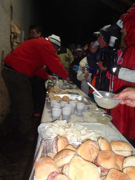 Il percorso era lo stesso degli altri anni, partenza in serata presso il campo sportivo di Avenone, salita attraverso la Valle di Sar presso la malga Comunale Maruzzo, qui i fradici partecipanti si sono potuti rifocillare con bevande calde, vin brulè, the (particolarmente apprezzato),brodo, panini con salame e dell'ottimo formaggio fresco frutto del meticoloso lavoro dei nostri produttori agricoli. Suggestivo il serpentone luminoso sul manto nevoso che risaliva la valle in direzione della malga.