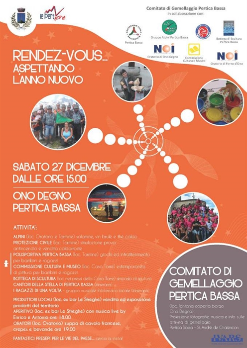 Sabato 27 dicembre nel borgo di Ono Degno in frazione Parrocchia, ha avuto luogo la giornata organizzata dal Comitato di Gemellaggio Pertica Bassa, in sinergia con tutte le Associazioni presenti sul territorio, intitolata Rendez-Vous, aspettando l'anno nuovo.