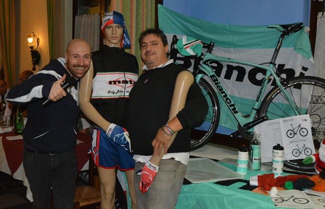 Faceva bella mostra di sé una bicicletta Bianchi da strada, azienda top italiana che dalla prossima stagione, grazie a Mata, fornirà a prezzi di favore con l'opzione noleggio o acquisto ai ciclisti Perticaroli il modello Methanol per le gare di mountain bike, un ulteriore salto di qualità.
