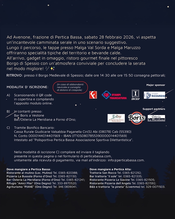 In uno scenario mozzafiato, tra i suggestivi paesaggi di Avenone – Pertica Bassa (BS), prenderà vita un’esperienza unica che unisce trekking, gusto e convivialità!