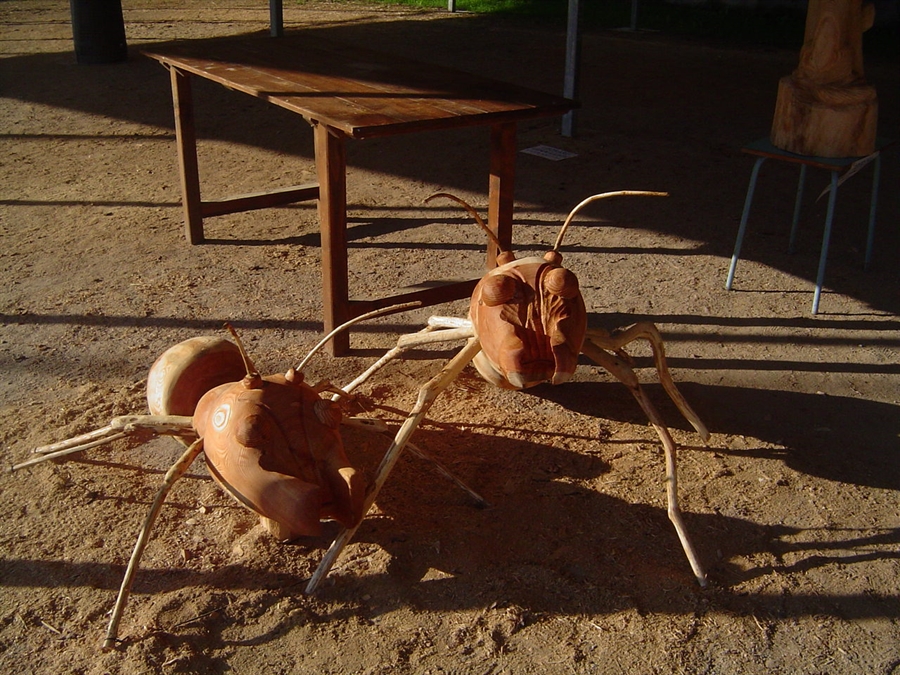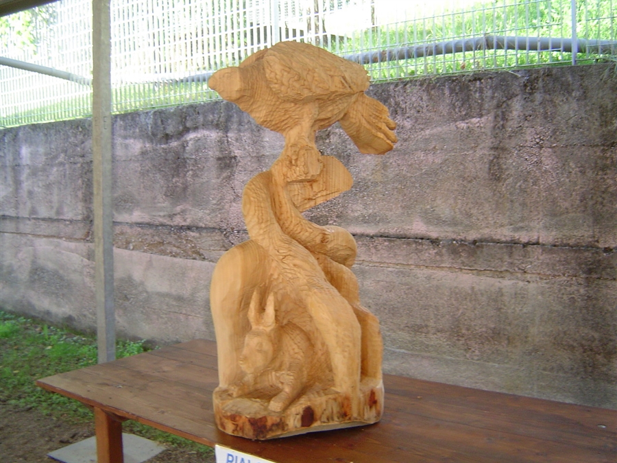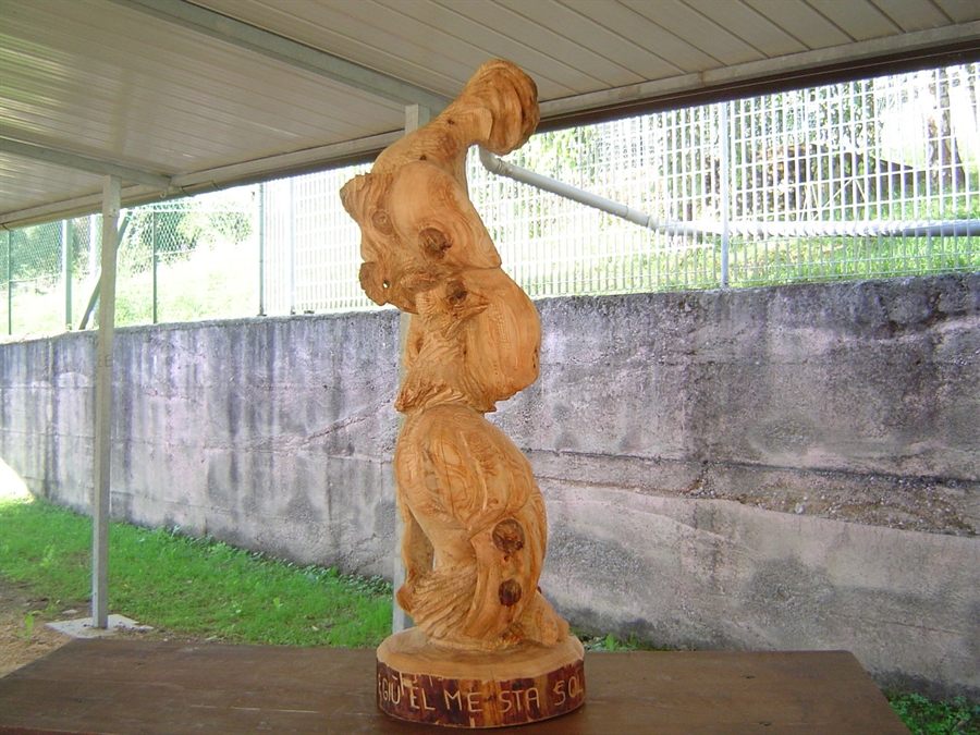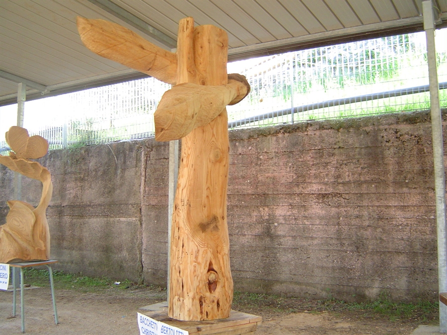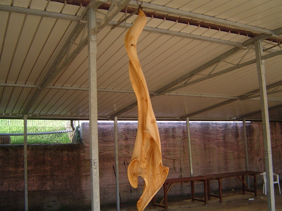 parlarvi della mattina del giovedì: non è facile cosa un infuocato breefing mattutino! Gli allievi della Bottega con le motoseghe ancora fredde in mano e il docente al centro del campo che lanciava infuocati incitamenti nel nome di un genere di arte che banale non può essere. Non è un rapporto facile il nostro ma è forse da questo stato di cose che escono i risultati che si possono vedere!