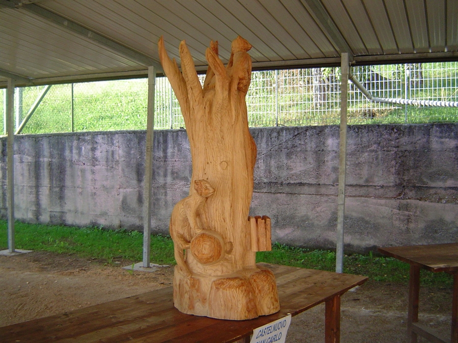 Parlarvi dei momenti in cui, presi dal nostro lavoro, notavamo dietro di noi la presenza permanente di gruppi di persone che osservavano con vero interesse quanto si stava facendo; oppure di Francesco, un bimbetto di Milano che ha passato quasi due ore a bocca aperta osservando quanto stava accadendo. (qualcuno mosso a compassione gli ha pure messo un paio di cuffie, non è facile resistere tanto tempo sotto una tettoia al suono di dieci motoseghe).