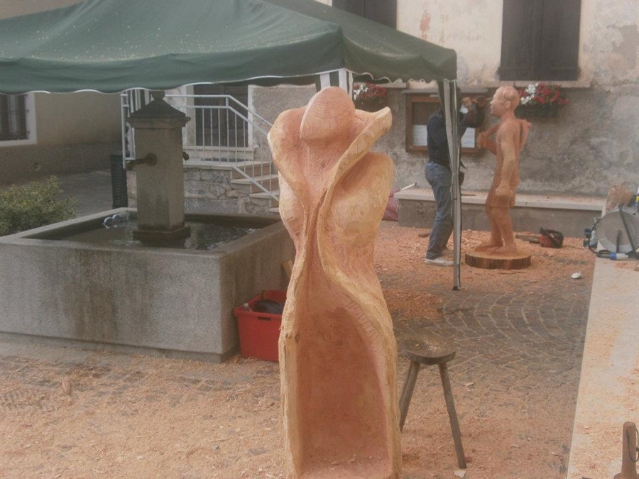Crescini Giacomo e Zambelli Elia hanno concretizzato nel legno la storia e la leggenda delle donne di Fusio; due interpretazioni diverse o addirittura opposte ma che insieme concretizzano questo alone di storia e leggenda.
